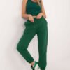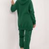 Warmed women’s casual style set, ideal for colder days and everyday outings, consists of a T-shirt, sweatshirt and pants. The set is distinguished by a mélange pattern, which adds to its unique character. Made mainly of cotton, it provides comfort and warmth, ideal for autumn and winter days. The pants have long legs finished with ribbed cuffs and a high waist, which emphasizes the silhouette and guarantees comfortable wear. There is a waistband with binding, which allows for a perfect fit to the figure, and the slip-in side pockets are a practical solution for small items. The long-sleeved sweatshirt is fastened halfway with press studs, which adds originality and makes it easy to put on. It also has a hood and a large kangaroo pocket, which adds a sporty touch and additional functionality. The whole is complemented by a classic T-shirt, creating a comfortable and stylish set, ideal for everyday styling on colder days.