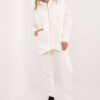 Women’s casual style tracksuit set, ideal for everyday outings, consists of a sweatshirt and pants. Made from a blend of cotton and elastane, it provides comfort, softness and freedom of movement, thanks to the elastic properties of the material. The sweatshirt is long-sleeved, zippered, and has patch pockets on the front, adding to its practicality and sporty style. The sweatshirt is also equipped with a hood for extra protection against the cold, and the plain pattern makes the set look classic and stylish. The pants with long legs ending in ribbed cuffs have a high rise, which accentuates the silhouette and guarantees a comfortable fit. The waist has an elastic waistband that provides comfort and a perfect hold on the pants. The side slip pockets in the pants are practical and functional. This set is a combination of comfort, style and practicality, perfect for casual everyday styling.