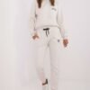 Women’s insulated set, consisting of a sweatshirt and pants, ideal for colder days. Made from a blend of cotton and polyester, it provides warmth and wearing comfort. The predominant melange pattern adds a stylish, casual touch to the set, while small patches subtly diversify the design. The sweatshirt has long sleeves and a practical hood, perfect for inclement weather, while the pants have a high-waisted, waistband adjustable with a tie for a perfect fit. The drawstring-finished legs give the pants a sporty look, while side slip pockets provide convenience. The set is perfect for everyday outings and relaxing in comfortable style.