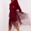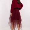 This stylish women’s set combines comfort with a feminine accent, perfect for everyday outings. The set includes a long-sleeved blouse with a V-neck and a tulle midi dress with spaghetti straps and a round neckline. The smooth pattern gives the whole a universal character, and subtle details, such as the patch at the bottom of the blouse, add a modern style. Made of a blend of viscose, cotton, and elastane, the set is comfortable and pleasant to wear. The dress with lining provides comfort and elegance, while the blouse in a casual style perfectly balances the lightness of the tulle dress. This is a set that will work great at work, meetings with friends, or during daily activities. You can wear both elements together or separately, creating various stylizations.