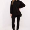 Women’s set consisting of a long sweatshirt and leggings is the perfect choice for women who value comfort and style in their everyday outfits. Maintained in a casual character, it will be perfect for a walk, shopping or relaxing at home. The sweatshirt has an elongated back, which gives it a modern look and ensures additional comfort when wearing. Made of a blend of cotton and polyester, it offers a pleasant touch and durability. Equipped with a hood and long sleeves, it perfectly protects against the cold on colder days. Leggings with tapered legs and a high waist emphasize the silhouette, while providing freedom of movement. Made of cotton with the addition of elastane, they fit perfectly to the body. An additional advantage is the ribbed material, which adds character and distinguishes them from other models. The whole set is maintained in a uniform, smooth pattern, which allows for easy matching of accessories and creating a cohesive, everyday look.