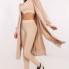 Women’s set consisting of a sweatshirt, top, and leggings is a harmonious combination of casual and sporty style. Created with everyday comfort and activity in mind, it will work perfectly both during training and during relaxation. The extended-length sweatshirt is a practical solution for cooler days. Fastened with a zipper and equipped with slip pockets, it provides comfort and functionality. Made from a blend of cotton, polyester, and elastane, it combines softness with elasticity. Long sleeves and a hood additionally protect against wind and cold. The top with a round neckline is simple yet versatile, perfectly matched to the entire set. Its composition of cotton and elastane guarantees breathability and wearing comfort. Leggings with tapered legs and a high waistline emphasize the silhouette, while providing full freedom of movement. Made of cotton and elastane, they are characterized by elasticity and durability. An additional feature is the ribbed structure of the material, which gives them a unique character. The smooth pattern of the entire set fits perfectly into the daily sporty look, offering both style and maximum comfort of use.
