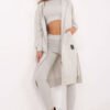 Women’s set consisting of a hoodie, top, and leggings is a harmonious combination of casual and sporty style. Created with everyday comfort and activity in mind, it will work perfectly both during training and relaxation. The hoodie with an extended cut is a practical solution for cooler days. Fastened with a zipper and equipped with slip pockets, it provides comfort and functionality. Made of a blend of cotton, polyester, and elastane, it combines softness with flexibility. Long sleeves and a hood additionally protect against wind and cold. The top with a round neckline is simple yet versatile, perfectly matched to the entire set. Its composition of cotton and elastane guarantees breathability and comfort. Leggings with tapered legs and a high waist emphasize the silhouette, while providing full freedom of movement. Made of cotton and elastane, they are characterized by elasticity and durability. An additional feature is the ribbed structure of the material, which gives them a unique character. The smooth pattern of the set fits perfectly into the everyday sporty look, offering both style and maximum comfort of use.