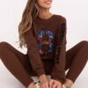 A women’s set consisting of a sweatshirt and leggings is an excellent proposition for everyday, casual styling. Ideal for women who value comfort, while also wanting to look fashionable and stylish. The sweatshirt with a classic cut, round neckline and long sleeves is made of a high-quality blend of cotton, polyester, and elastane. It is soft to the touch, elastic, and durable, providing comfort throughout the day. Subtle patches and embroidery on the sleeve and front give it a unique character, emphasizing the modern design. Leggings with tapered legs and a high waist are the perfect complement to the set. Made of cotton with a touch of elastane, they perfectly fit the silhouette, providing full freedom of movement and comfort. The whole set is kept in a smooth pattern, making it versatile and easy to combine with various accessories. It is a perfect choice for everyday outings, relaxation, or activities in a casual style.
