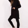 A women’s set consisting of a long hoodie and leggings is the perfect choice for everyday casual styling. Practical, comfortable, and stylish, it is perfect for walks, meetings with friends, or relaxing at home. The hoodie, made of a soft and elastic blend of cotton and elastane, ensures maximum comfort when worn. Equipped with a spacious hood and long sleeves, it is perfect for cooler days. The kangaroo pocket on the front adds functionality and a casual character. The leggings with tapered legs and a high waistline emphasize the silhouette, while guaranteeing full freedom of movement. Made of cotton with elastane, they perfectly fit the body, providing comfort throughout the day. The set, maintained in a smooth pattern, is a harmonious whole that can be easily complemented with favorite accessories. It is an excellent solution for women who value style and comfort in everyday life.