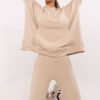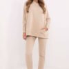 Women’s tracksuit set is a perfect combination of comfort and style, ideal for everyday activities. Made of a soft blend of cotton and polyester, it ensures comfort and durability of the material. The sweatshirt has a classic, casual cut with long sleeves finished with ribbing. On the front, there is a practical kangaroo pocket that adds a sporty character and is perfect for storing small items. The smooth pattern of the sweatshirt makes it versatile and easy to style for everyday wear. The pants stand out with a high waist that emphasizes the silhouette, and cuffs at the bottom for a perfect fit. Side, slip pockets are a practical element that enhances the functionality of the pants. This set is a perfect choice for women who value comfort and a fashionable look for everyday wear. The smooth texture and muted design make the set suitable for any occasion in a casual style.