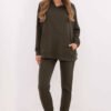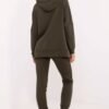 Women’s tracksuit set is a perfect combination of comfort and style, ideal for everyday activities. Made of a soft blend of cotton and polyester, it ensures wearing comfort and material durability. The sweatshirt has a classic, casual cut with long sleeves finished with ribbing. On the front, there is a practical kangaroo pocket that adds a sporty character and is perfect for storing small items. The smooth pattern of the sweatshirt makes it versatile and easy to style for everyday wear. The pants stand out with a high waist that accentuates the silhouette, and cuffs at the bottom of the legs for a perfect fit. Side, slip-in pockets are a practical feature that enhances the functionality of the pants. This set is an excellent choice for women who value comfort and a trendy look for everyday wear. The smooth texture and understated design make the set suitable for any occasion in a casual style.