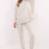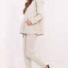Women’s tracksuit set is a perfect combination of comfort and style, ideal for everyday activities. Made of a soft blend of cotton and polyester, it ensures comfort and material durability. The sweatshirt has a classic, casual cut with long sleeves finished with ribbing. On the front, there is a practical kangaroo pocket that adds a sporty character and is perfect for storing small items. The smooth pattern of the sweatshirt makes it universal and easy to style for everyday wear. The trousers stand out with a high waist that emphasizes the silhouette, and with cuffs at the bottom for a perfect fit. Side slip pockets are a practical element that enhances the functionality of the trousers. This set is a perfect choice for women who value comfort and a fashionable look for everyday wear. The smooth texture and subdued design make the set suitable for any casual occasion.