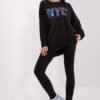 Women’s set consisting of a sweatshirt and leggings is the perfect combination of comfort and style. The sweatshirt has a print on the front, which gives it a unique character and emphasizes the modern design. Made from a blend of high-quality cotton, polyester and elastane, it provides comfort and durability. Leggings are distinguished by a high waist, which perfectly emphasizes the waist and provides comfort during daily activities. The tapered legs fit the figure perfectly, and the ribbed material adds subtle texture and a fashionable look. The set will be perfect for everyday outings, walks or moments of relaxation at home. The combination of universal style and functionality makes it a great choice for any season.