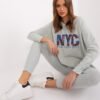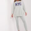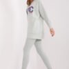 Women’s set consisting of a sweatshirt and leggings is the perfect combination of comfort and style. The sweatshirt has a print on the front, which gives it a unique character and emphasizes the modern design. Made from a blend of high-quality cotton, polyester and elastane, it provides comfort and durability. Leggings are distinguished by a high waist, which perfectly emphasizes the waist and provides comfort during daily activities. The tapered legs perfectly fit the figure, and the ribbed material adds subtle texture and a fashionable look. The set will be perfect for everyday outings, walks or moments of relaxation at home. The combination of universal style and functionality makes it a great choice for any season.