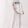 Women’s set consisting of a hoodie and leggings is the perfect combination of comfort and style. The hoodie has a print on the front, which gives it a unique character and emphasizes the modern design. Made of a blend of high-quality cotton, polyester, and elastane, it provides comfort and durability. The leggings stand out with a high waist, which perfectly accentuates the waist and provides comfort during daily activities. The tapered legs perfectly fit the silhouette, and the ribbed material adds a subtle texture and a fashionable look. The set is perfect for everyday outings, walks, or relaxing at home. The combination of a universal style with functionality makes it a great choice for any season.