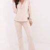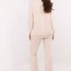 This women’s set is the perfect choice for everyday wear, combining comfort with minimalist style. It consists of a long-sleeved blouse with a wrap neckline, which adds a feminine touch to the whole look. The subtle patch on the blouse is a trendy detail that catches the eye. The pants have a simple cut, high waist, and a wide elastic band at the waist, providing perfect fit and comfort. The side slip pockets are not only practical but also emphasize the casual character of the set. Made of a soft blend of cotton, elastane, and polyester, ensuring comfort and durability. The set is perfect for walks, shopping, or relaxing at home, and its versatile design allows for easy adaptation to different occasions.