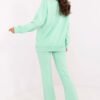 This women’s set is the perfect choice for everyday wear, combining comfort with a minimalist style. It consists of a long-sleeved blouse with a wrap neckline, adding a feminine touch to the overall look. The subtle patch on the blouse is a fashionable detail that attracts attention. The pants have a simple cut, a high waist, and a wide elastic band at the waist, providing a perfect fit and comfort. The side slip pockets are not only practical but also emphasize the casual character of the set. Made of a soft blend of cotton, elastane, and polyester, guaranteeing comfort and durability. The set is perfect for walks, shopping, or relaxing at home, and its versatile design allows for easy adaptation to different occasions.