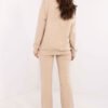 This women’s set is the perfect choice for everyday wear, combining comfort with a minimalist style. It consists of a long-sleeved blouse with a wrap neckline, which adds a feminine touch to the whole look. The subtle patch on the blouse is a trendy detail that catches the eye. The trousers have a simple cut, a high waist, and a wide elastic band at the waist, providing perfect fit and comfort. The side slip pockets are not only practical but also emphasize the casual character of the set. Made of a soft blend of cotton, elastane, and polyester, ensuring comfort and durability. The set is perfect for walks, shopping, or relaxing at home, and its versatile design allows for easy adaptation to different occasions.