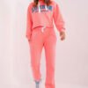 Casual tracksuit set, consisting of a hoodie and pants, is the perfect choice for everyday styling. The hoodie with a print on the front and a practical hood gives the set a modern, urban character. Drawstrings on the hoodie and pants allow for adjustment, ensuring comfort and individual fit. Pants with long legs, finished with cuffs, guarantee a stylish look and comfortable wear. The high waist of the pants and side pockets add functionality and emphasize the comfort of the set. Made of dominant cotton, the set is soft, airy, and perfect for a casual day at home or out for a walk.