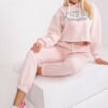 A casual tracksuit set consisting of a hoodie and pants is the perfect choice for everyday stylizations. The hoodie with a print on the front and a practical hood gives the set a modern, urban character. Drawstrings on the hoodie and pants allow for adjustment, ensuring comfort and individual fit. Pants with long legs, finished with cuffs, guarantee a stylish look and comfortable wear. The high waist of the pants and side slip pockets add functionality and emphasize the comfort of the set. Made of dominant cotton, the set is soft, breathable, and perfect for a casual day at home or a walk.