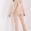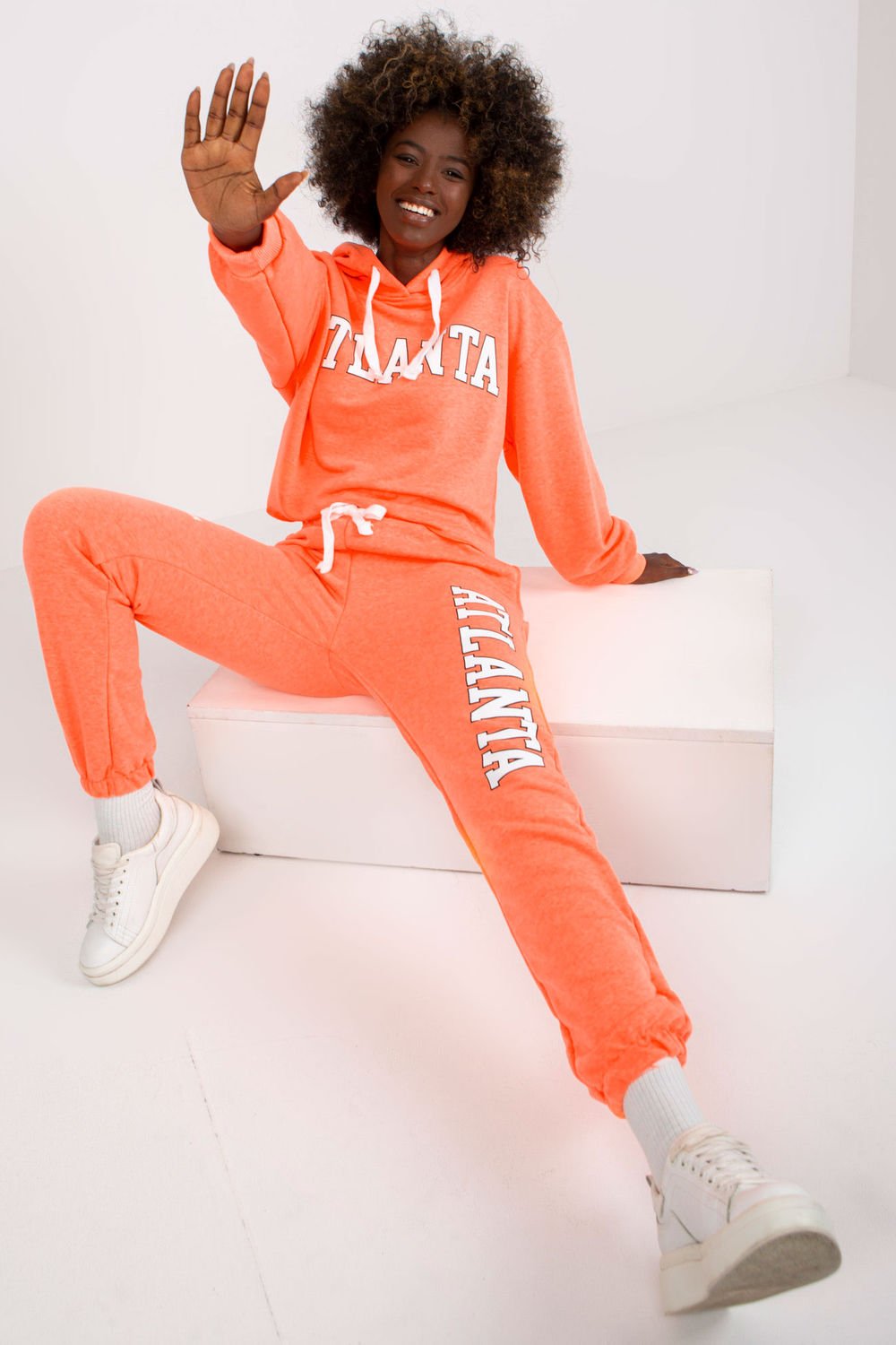 Casual tracksuit set, consisting of a hoodie and pants, is the perfect choice for everyday styling. The hoodie with a front print and a practical hood gives the set a modern, urban character. Drawstrings on the hoodie and pants allow for adjustment, ensuring comfort and individual fit. Pants with long legs, finished with ribbing, guarantee a stylish look and comfortable wearing. The high waist of the pants and side slip pockets add functionality and emphasize the comfort of the set. Made of predominant cotton, the set is soft, breathable, and perfect for a casual day at home or on a walk.