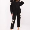 This elegant, yet extremely comfortable tracksuit set is the perfect choice for everyday stylizations. Made of high-quality blend of viscose, cotton, and elastane, it provides softness, breathability, and perfect fit to the silhouette. The long-sleeved hoodie with a practical hood protects against the cold, and subtle flower-shaped inserts with decorative zircons add a unique character to it. High-waisted pants with straight legs guarantee comfort, and side slip pockets increase functionality. Stylish floral applications also appear on the pants, creating a cohesive and fashionable whole. It is the perfect choice for women who appreciate a combination of casual style with a touch of elegance. It will work great for everyday wear, providing comfort and a stunning look.