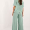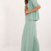 Elegant and comfortable set, which perfectly combines casual style with a touch of elegance. Made of light and breathable viscose, it ensures comfort throughout the day, making it perfect for everyday wear and work. The shirt in a classic cut has short sleeves, a collar and button fastening, giving it a timeless character. Wide trousers with a high waist beautifully emphasize the silhouette, and a concealed side zip guarantees an aesthetic finish and comfortable fit. Inset side pockets add functionality and a relaxed character. The smooth pattern and minimalist design make it easy to pair the set with various accessories, creating stylizations for different occasions. It’s the perfect choice for women who appreciate comfort and timeless style!