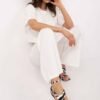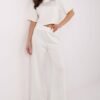 Elegant and comfortable women’s set perfect for everyday wear and work. Made of high-quality blend of viscose, elastane, and polyester, it ensures comfort and perfect fit to the silhouette. The smooth fabric gives it a classic, timeless look. The short-sleeved blouse subtly accentuates the feminine silhouette, while the straight-legged pants with a high waist guarantee comfort and an elegant look. An elastic band sewn into the waist ensures a perfect fit and comfort throughout the day. This is a great choice for casual styling, both for everyday wear and work.