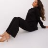 Comfortable and stylish women’s set made of ribbed fabric, perfect for everyday wear and work. Made of high quality cotton with added elastane, it provides comfort, flexibility, and perfect fit to the silhouette. Smooth texture combined with ribbing gives it a subtle, modern character. The loose-fitting blouse has long sleeves and a classic round neckline, making it versatile and comfortable. High-waisted pants with wide legs ensure freedom of movement, and side slip pockets add functionality. This is an excellent choice for women who appreciate a casual style, comfort, and a fashionable look!