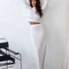 Minimalist and timeless total look from IVON, that is, a set: a long-sleeved blouse and a skirt with a slit is a definite must-have in your wardrobe. This is an extremely elegant, but also versatile set that you can wear literally anywhere, together or combined with other pieces of clothing. You can achieve the effect of a bare belly or not, just adjust the height of the skirt as you like. Decide for yourself! Cool, right? The set does not have a lining, the whole is finished with a merrow seam. The material stretches up to 10 cm. The set is designed and sewn in Poland.