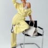 The women’s set is a stylish and comfortable combination of elegance with everyday comfort. The loose sweater with a V-neck and snap fastening provides freedom of movement and fits perfectly on the silhouette. The wide ribbing at the bottom adds structure and subtly accentuates the waist. The long pants with wide legs are the epitome of comfort and class, with slip pockets on the sides and an elastic waistband for a perfect fit. Made of soft, pleasant to the touch material, the set is suitable for both everyday wear and more elegant stylizations. It can be worn together or combined with other wardrobe items to create countless fashionable combinations.