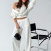 The women’s set is a stylish and comfortable combination of elegance with everyday comfort. The loose sweater with a V-neck and snap closure provides freedom of movement and fits perfectly on the silhouette. The wide ribbing at the bottom adds structure and subtly accentuates the waist. The wide-legged pants are the epitome of comfort and class, featuring side slip pockets and an elastic waistband for a perfect fit. Made of soft, pleasant to the touch material, the set is suitable for both everyday wear and more elegant stylizations. It can be worn together or combined with other wardrobe pieces, creating countless fashionable combinations.
