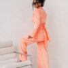 An orange suit is an elegant and modern wardrobe element, perfect for various occasions. Thanks to carefully designed construction and the use of high-quality materials, this suit perfectly fits the silhouette, emphasizing its advantages. Viscose combined with elastane ensures comfort, freedom of movement, and comfort throughout the day. The jacket has an attractive cut that gives it an elegant character. The pants, which are the perfect complement to the suit, stand out with a comfortable cut. The suit is an excellent choice for people who value both style and comfort. Its unique color and elegant form make it perfect for both formal and less formal events. Choose class and comfort, choose the EMMA suit in orange.