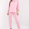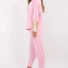 Elegant and casual women’s set is a perfect combination of comfort and style. Made of soft and stretchy blend of viscose and elastane, it ensures comfort all day long. The long-sleeved blouse with a boat neckline subtly accentuates the neck line, while the golden sleeve finish adds a touch of elegance. The high-waisted pants with a tie waist and side slip pockets guarantee comfort and perfect fit. The cuffs finished with ribbing give a sporty character. Thanks to the smooth pattern and careful finish, the set will work great for both everyday wear and work, creating a stylish and comfortable outfit.