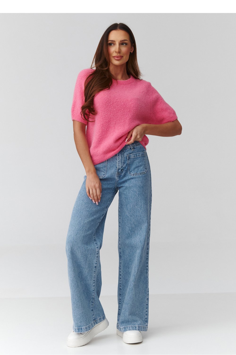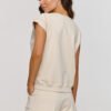This tracksuit is a combination of comfort and a fashionable look, perfect for summer days and outdoor activities. The loose-fitting blouse finished with cuffs gains flexibility and universality. Meanwhile, raglan sleeves visually slim the upper shoulder line and provide a wide range of motion. The shorts have an elastic waistband, which ensures a comfortable fit, and the loose fit does not restrict movement. Side pockets are a practical addition that enhances functionality. The cuff on the shorts gives them a more sophisticated character while adding a slightly more formal expression to the outfit. This detail makes them more elegant, perfect for both casual and slightly more formal occasions. Additionally, such stitching on the legs visually lengthens them and gives the shorts a slimmer shape, which is beneficial for the silhouette. This tracksuit is a combination of subtle elegance with stylish design while providing maximum comfort and a timeless character.