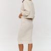 This tracksuit is a proposal for women who appreciate style with a hint of comfort. The simple cut and versatile form of the dress perfectly accentuate the silhouette. Thanks to the ribbed structure of the material, it is both elastic and compact, providing full freedom of movement. The midi length is a classic in fashion, which additionally emphasizes elegance and never goes out of style. The loose cut of the sweatshirt and the V-neckline give it a casual yet stylish character. Sleeves finished with ribbing allow for adjusting their length, and the short waistband fits perfectly with the dress, adding lightness to it. The loose sweatshirt and fitted dress create a fashionable yet practical look that is suitable for both everyday meetings and more relaxing days at home.