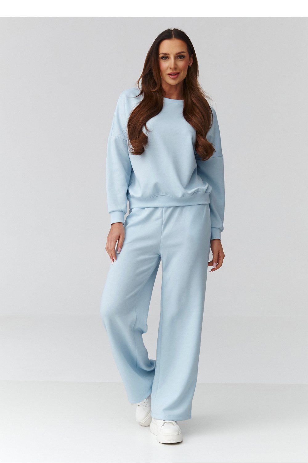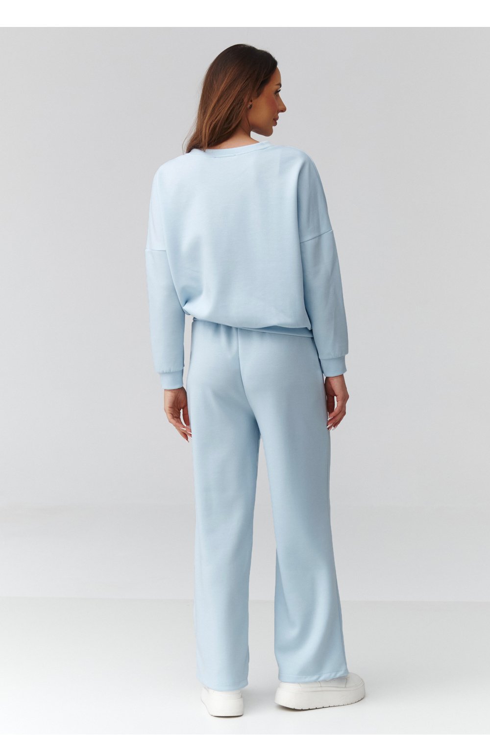 This tracksuit is a proposal for women who appreciate style with a hint of comfort. The simple cut and versatile form of the dress perfectly accentuates the silhouette. Thanks to the ribbed structure of the material, it is both elastic and compact, providing full freedom of movement. Midi length is a fashion classic that further emphasizes elegance and never goes out of style. The loose cut of the sweatshirt and the V-neckline give it a casual yet stylish character. Sleeves with ribbed cuffs allow for length adjustment, and the short waistband fits perfectly with the dress, adding lightness to it. The relaxed sweatshirt and fitted dress create a fashionable yet practical look that is suitable for both everyday meetings and more relaxing days at home.