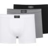 Classic set of men’s boxer shorts in three universal colors: white, black, and grey. Made of soft and breathable fabric, ensuring comfort throughout the day. Basic model with a smooth texture of the material. Fitted cut and elastic waist guarantee comfort and freedom of movement. Packed in an elegant box, perfect for a gift.