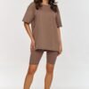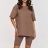 Classic at its best! This two-piece set combines a casual t-shirt with fitted turtlenecks, creating a minimalist and stylish ensemble. Turtlenecks made of ribbed material are a must-have for summer. They fit perfectly to the silhouette, emphasizing the shapes, but at the same time guaranteeing comfort thanks to the elastic material. The length of the turtlenecks makes them comfortable and they go great with looser t-shirts or tops. The t-shirt in this set has an oversized cut, which ensures full freedom of movement. Short sleeves and a round neckline give it a classic, universal look. The set is made of cotton with elastane, making it flexible and perfectly fitting the body, guaranteeing freedom and comfort. Its versatility makes it perfect for everyday wear, relaxing at home, physical activities, as well as going out in the city or meeting friends. You can wear the entire cotton set together or combine individual items with other clothing. The t-shirt will work great with jeans or leggings, and the turtlenecks with a crop top will create a sporty look.