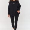 The 3-in-1 set with napas is a proposal that will successfully work in many everyday situations, combining comfort with a fashionable look. The set consists of a sweatshirt, a top, and leggings. The sweatshirt in this set stands out with a buttoned collar, which adds a stylish but also practical character to it. The loose cut provides full freedom of movement, and the ribbing on the sleeves and at the bottom of the sweatshirt ensures comfort, fitting the clothing to the body and preventing the material from rolling up. Additionally, the collar is enriched with a subtle detail in the form of metal buttons. The ribbed top has a short cut that pairs perfectly with the fitted leggings. Its simple cut with a round neckline makes it a classic element that can easily be paired with other clothes. The leggings, also made of ribbed material, perfectly fit the silhouette, emphasizing its shapes but at the same time providing comfort. The material is elastic, allowing full freedom of movement, perfect for everyday outings or exercises. The combination of a smooth sweatshirt with a top and leggings made of textured material creates an interesting, coherent, and practical stylization that will meet your expectations regardless of the season.
