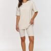 Classic at its best! This two-piece set combines a casual t-shirt with fitted collar, creating a minimalist and stylish ensemble. The ribbed material collar is a must-have for summer. They fit perfectly to the silhouette, emphasizing the shapes, but at the same time guaranteeing comfort thanks to the elastic material. The length of the collar makes them comfortable and a great match for looser t-shirts or tops. The t-shirt in this set has an oversized cut, which provides full freedom of movement. Short sleeves and a round neckline give it a classic, universal look. The set is made of cotton with elastane, making it flexible and perfectly fitting to the body, guaranteeing freedom and comfort. Its versatility makes it perfect for everyday wear, relaxing at home, physical activity, as well as going out in the city or meeting friends. You can wear the entire cotton set together or mix and match individual pieces with other clothing. The t-shirt pairs well with jeans or leggings, and the collar with a crop top will create a sporty look.