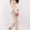 Casual women’s tracksuit set, combining comfort with a fashionable look. Made of a soft blend of viscose, cotton, and elastane, it ensures comfortable wear throughout the day. The smooth material gives it a universal character, and decorative heart-shaped patches on the sweatshirt and pants add subtle, feminine elegance. The sweatshirt with long sleeves and a practical hood will work great on cooler days. Pants with a simple cut, high waist, and side slip pockets guarantee comfort and freedom of movement. It is an ideal choice for everyday styling, perfect for a walk as well as relaxation in the comfort of your own home.