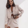 Stylish and modern women’s set that combines elegance with comfort. Skirt shorts are a unique element of the wardrobe, fastened with a concealed zipper, combining the comfort of shorts with the feminine charm of a skirt. The jacket with a classic cut and long sleeves adds elegance to the whole look, and its snap closure emphasizes the minimalist character of the set. This is a perfect choice for formal occasions, business meetings or stylish outings, providing a fashionable and well-thought-out appearance.