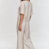 This elegant set is the perfect proposal for spring and summer days when you want to combine a fashionable look with high quality. The set includes a loose blouse with a boxy cut, which is perfect for elegant stylizations. The short sleeve and simple cut of the blouse make it a perfect option for formal and less formal occasions, combining elegance with comfort. The pants stand out with wide legs, giving the outfit a modern and elegant look. The elastic waistband ensures comfort while their length adds class and style to the whole look. The model is made of delicate and lightweight material imitating linen. The simple yet sophisticated cut gives the set a timeless character that will look stylish on any silhouette. The set is perfect for business meetings, elegant outings, or trips to the city when you want to combine elegance with comfort. You can pair it with heels, elegant sandals, or white sneakers.