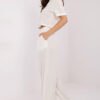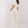 Ladies’ set consisting of a short shirt and pants is an ideal proposition for everyday stylizations in a casual style. Made of breathable linen and viscose, it guarantees comfort and freedom of movement, perfect for warmer days. The short-cut shirt with a classic collar and short sleeves is buttoned, giving it a stylish and light character. The smooth pattern makes the set universal and easy to style. Long, wide pants with a high waist beautifully emphasize the waist and optically lengthen the legs. The model is fastened with a button and a zipper, and the side, inset pockets add functionality. This set is created for women who appreciate comfort and a fashionable, minimalist look, perfect for everyday wear, to the city or for summer meetings.