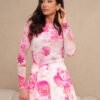 Elegant and stylish women’s set that combines subtlety with modern design. The blouse made of lightweight, transparent tulle with long sleeves and a round neckline adds feminine charm and delicacy to the styling. The skirt shorts are a functional and trendy solution, fastened with a concealed zipper, ensuring comfortable wearing, and the front pleats add an elegant and light character. The colorful print attracts attention and gives the whole a unique expression. An ideal choice for special occasions, social gatherings, or fashionable urban stylings.