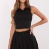 Sporty tennis-style women’s set is the perfect combination of comfort and style. It consists of a fitted sleeveless top with a collar and a flared skirt with built-in shorts, which provide comfort and freedom of movement. The high waist emphasizes the silhouette, and the elastic waistband guarantees a perfect fit. Made of high-quality polyamide and elastane, the set is lightweight, breathable, and perfect for everyday wear as well as during sports activities. The smooth design gives it a universal character, and the lack of pockets emphasizes the minimalist style. The mini length adds feminine charm, making this set a great choice for active women who appreciate fashion and functionality. Shorts material composition 95% polyester, 5% elastane.