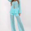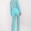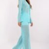 Stylish and comfortable openwork women’s set is a perfect choice for everyday wear for women who appreciate fashionable look and comfort. Made of a breathable blend of cotton, elastane, and polyester, it provides comfort and perfect fit. The shirt with long sleeves and a tie at the front instead of buttons adds lightness and subtle elegance to the styling. The straight-cut pants with a high waistline slim the silhouette, and the side slip pockets add functionality. Additionally, the upper part of the pants is lined, ensuring comfort when worn. The openwork pattern gives the whole outfit a unique, feminine character, fitting perfectly into casual styling. The set will work great in both everyday outfits and light, summer looks.
