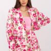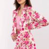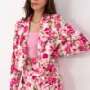 A unique women’s set that combines elegance with girlish charm, a short blazer and skirt-shorts in a fashionable floral pattern make it an ideal choice for everyday, work, formal meetings, or parties. The cropped blazer with lapels and a double-breasted closure beautifully highlights the waist, while the lining ensures comfortable wear. The decorative, detachable brooch adds sophistication to the ensemble and allows for subtle adjustment of the styling to the occasion. The high-waisted skirt-shorts combine the look of a classic skirt with the comfort of shorts. The elastic band sewn at the back of the waist provides a perfect fit and comfort throughout the day, even during more intense activities. The absence of pockets maintains a smooth line of the silhouette. Made from a high-quality blend of polyester and elastane, the set looks light and feminine while being comfortable and practical.