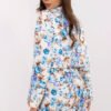 A unique women’s set combining elegance with girlish charm, a short blazer and shorts-skirt in a trendy floral pattern is the perfect choice for everyday wear, work, official meetings, or parties. The cropped blazer with lapels and double-breasted fastening beautifully accentuates the waist, while the lining ensures comfort. A decorative, detachable brooch adds sophistication and allows for subtle adjustment of the style to the occasion. The high-waisted shorts-skirt combines the look of a classic skirt with the comfort of shorts. The sewn-in elastic at the back of the waistband provides a perfect fit and comfort throughout the day, even during more intense activities. The absence of pockets maintains a smooth line of the silhouette. Made from a high-quality blend of polyester and elastane, the set presents itself lightly and femininely, while also being comfortable and practical.