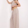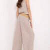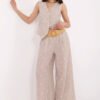 A stylish women’s set in a casual style, perfect for both everyday wear and work. It consists of a fitted vest and wide-leg trousers, creating a fashionable and comfortable ensemble with a subtle, elegant accent. The sleeveless vest, buttoned up, features a classic V-neckline that beautifully accentuates the neck. Enhanced with decorative embroidery and a waist tie, it perfectly shapes the silhouette and adds originality to the styling. The high-waisted trousers with wide legs visually elongate the legs, while the side slip pockets provide practicality without sacrificing an elegant appearance. Made from a stretchy blend of polyester and elastane, the set guarantees all-day comfort while maintaining a trendy, polished look.