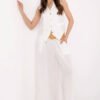 A stylish women’s suit in a casual design that works perfectly for both everyday wear and at the office. It consists of a fitted vest and wide-leg trousers, creating a fashionable and comfortable ensemble with a subtle, elegant accent. The sleeveless vest, fastened with buttons, features a classic V-neck that beautifully highlights the neckline. Enhanced with decorative embroidery and a belt that fastens at the waist, it wonderfully shapes the silhouette and adds originality to the outfit. The high-waisted trousers with wide legs visually elongate the legs, while the slip side pockets provide practicality without sacrificing an elegant appearance. Made from stretchy material, a blend of polyester and elastane, the suit guarantees comfort throughout the day while maintaining a trendy, polished look.