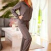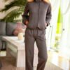 The Fogo set is made of pleasant to the touch cotton jersey fabric. The addition of elastane makes the material retain its shape even after prolonged use. The sweatshirt is zippered, finished with a stand-up collar, with side pockets and an original pocket on the sleeve, which also works great as a light jacket. The trousers are classic loose-fitting sweatpants that provide comfort and emphasize the sporty character of the whole outfit. The length of the trousers given in the table refers to the inseam length.