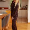 Set Fogo made of pleasant to the touch cotton sweatshirt fabric. The addition of elastane makes the material keep its shape even after prolonged use. The sweatshirt is zippered, finished with a stand-up collar, with side pockets and an original pocket placed on the sleeve, which will also work great as a light jacket. The trousers are classic loose-fitting sweatpants, which provide comfort and emphasize the sporty character of the whole set. The length of the trousers given in the table refers to the inseam length.